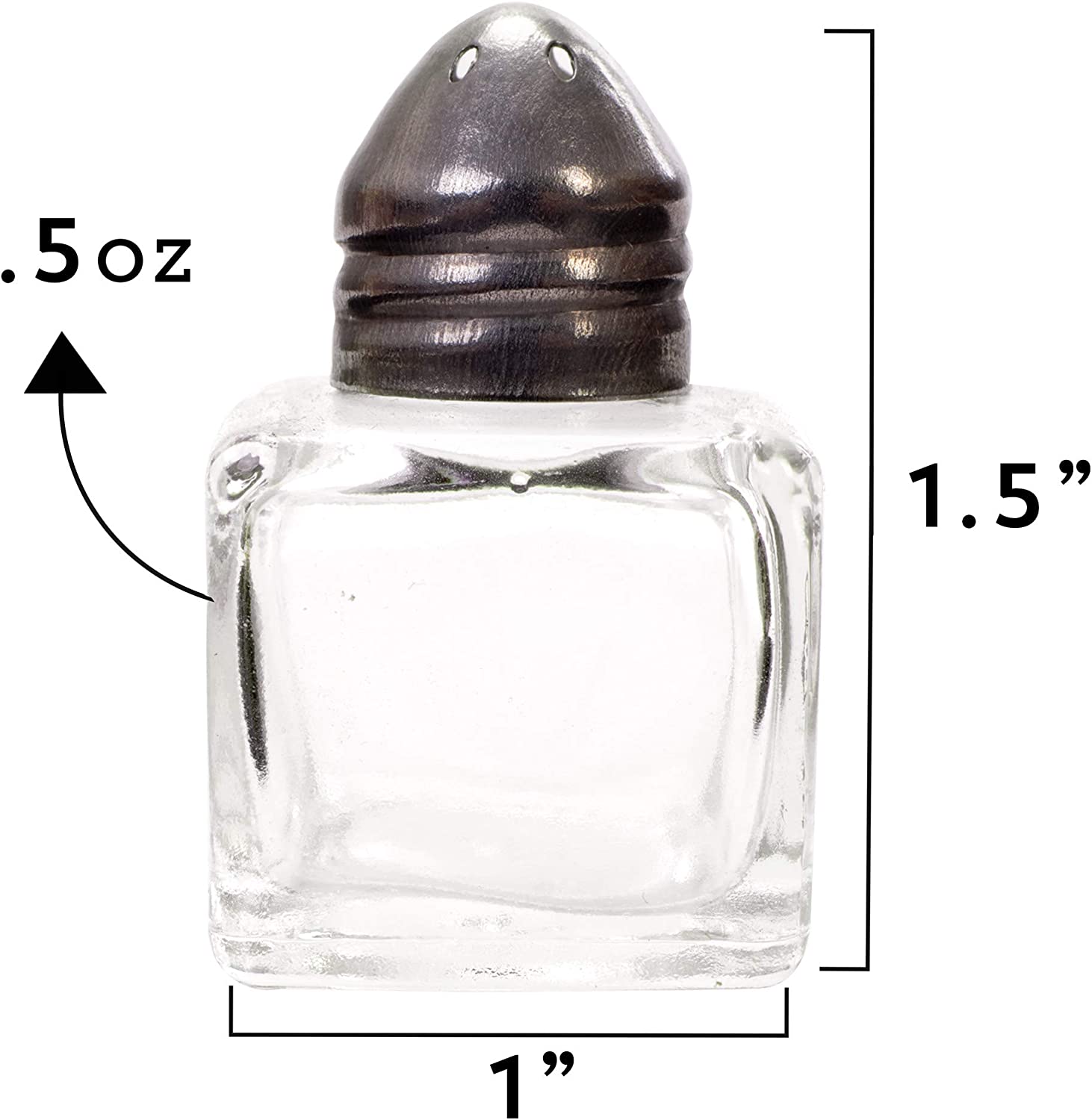 1" x 1.5" stainless steel top and glass cube body, holds .5oz.